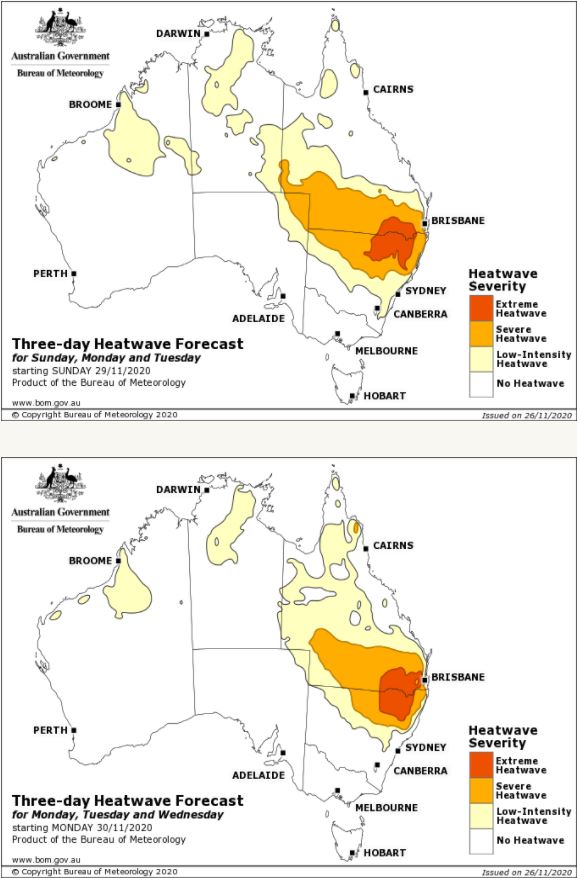 Image 6: Bureau of Meteorology Heatwave maps. Sunday-Tuesday, Monday-Wednesday.