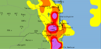 Record heat turns to potentially severe thunderstorms for northeast NSW and southeast QLD13 March 2019: Record March heat is giving way to potentially severe thunderstorms over southeast Queensland and northeast NSW over the next few days as a southeasterly change pumps moisture into a low pressure trough lying over the region. |