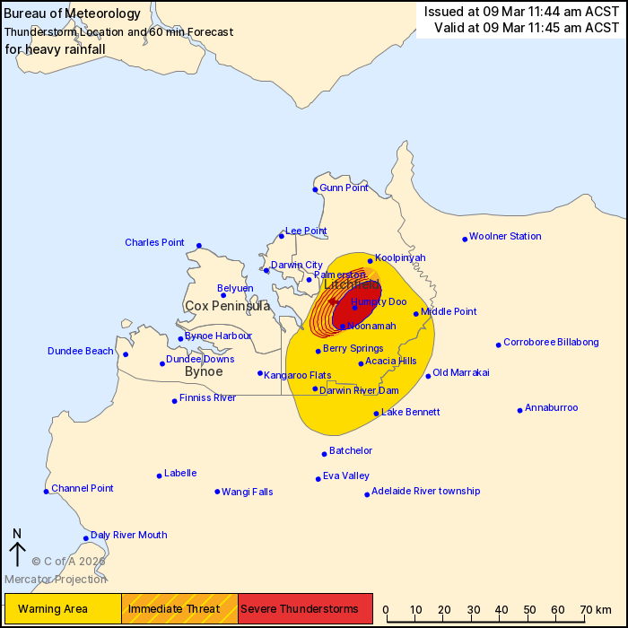thunderstorm is slow moving. It is forecast to affect Koolpinyah