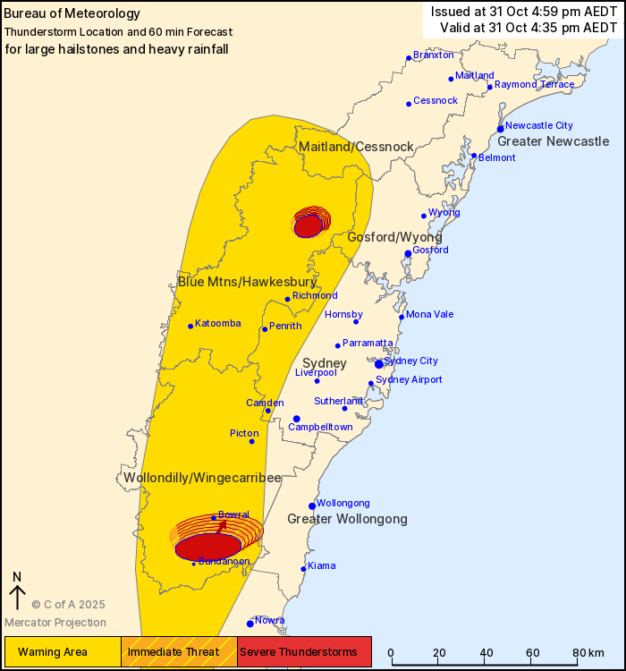 The Bureau of Meteorology warns that, at 4:35 pm, severe