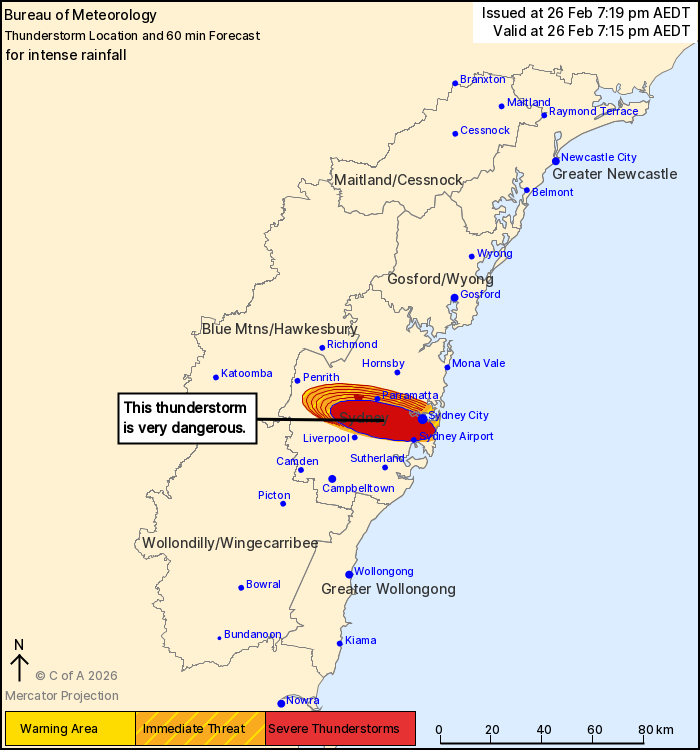 The Bureau of Meteorology warns that, at 7:15 pm, a VERY DANGEROUS