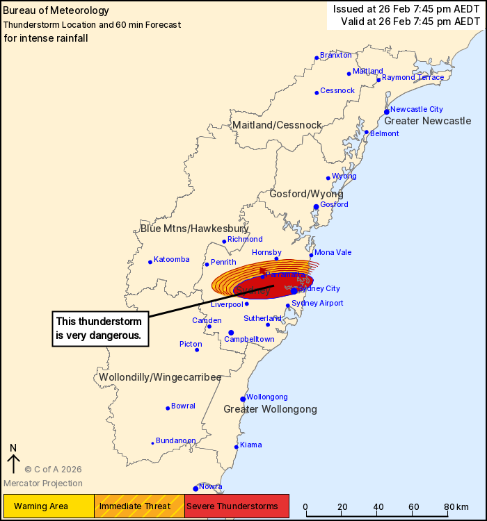The Bureau of Meteorology warns that, at 7:45 pm, a VERY DANGEROUS