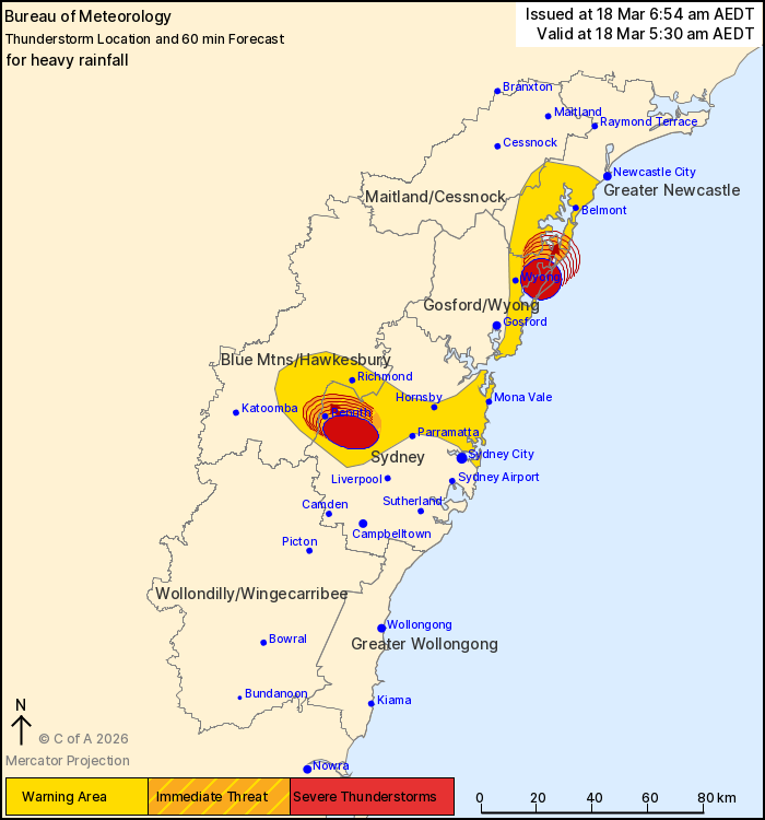 The Bureau of Meteorology warns that, at 5:30 am, severe