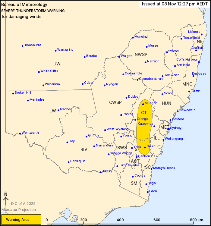 affected include Goulburn, Mudgee, Bathurst, Lithgow, Jenolan Caves