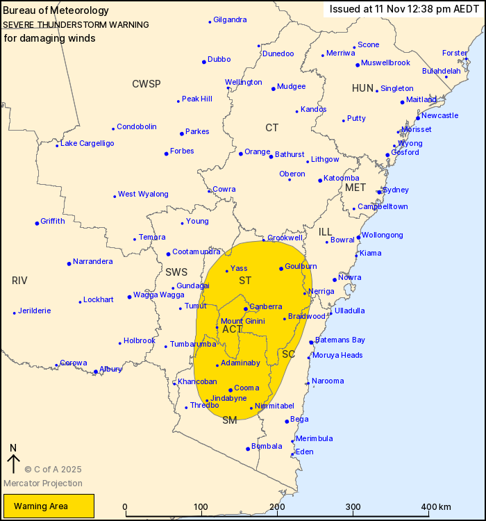 affected include Canberra, Goulburn, Cooma, Yass, Braidwood and