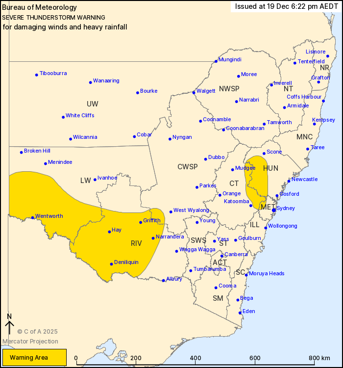 affected include Deniliquin, Griffith, Hay, Wentworth, Narrandera