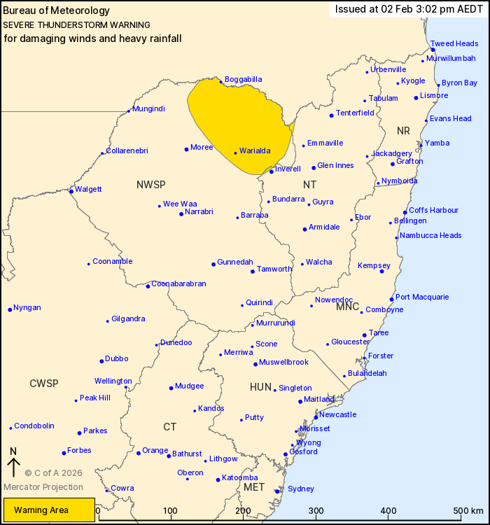 Severe thunderstorms are likely to produce damaging winds and heavy rainfall that may lead to flash flooding in the warning area over the next several hours. Locations which may be affected include Warialda, Boggabilla and Ashford.