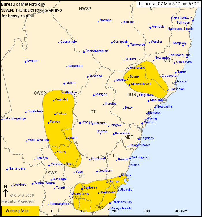 Scone, Parkes, Braidwood and Young.