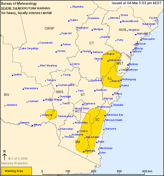 may be affected include Wollongong, Bowral, Katoomba, Tumbarumba,