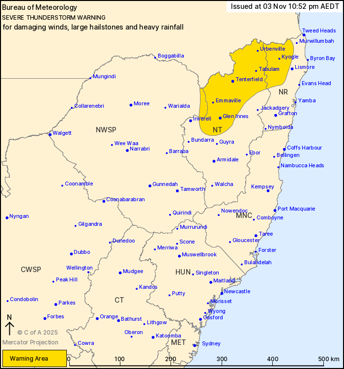 be affected include Tenterfield, Glen Innes, Kyogle, Tabulam,