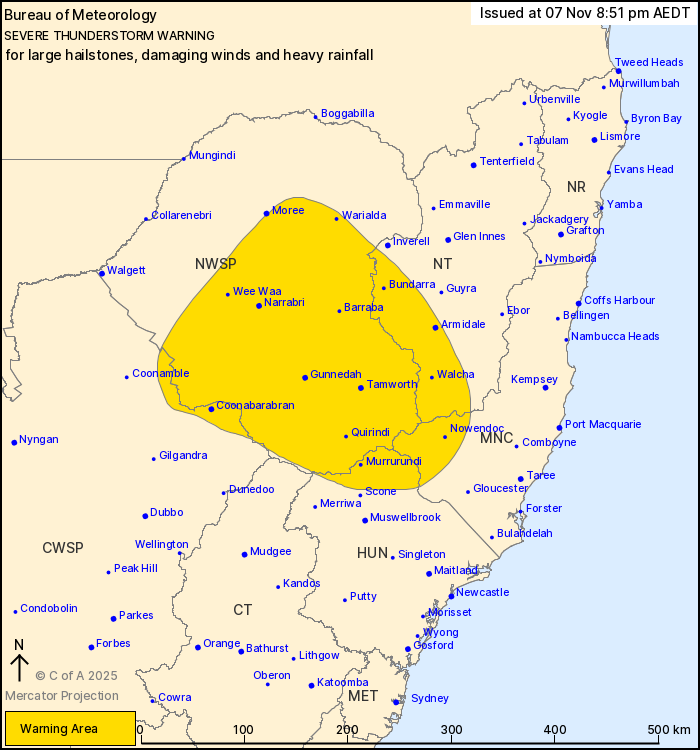 may be affected include Armidale, Tamworth, Gunnedah, Narrabri and