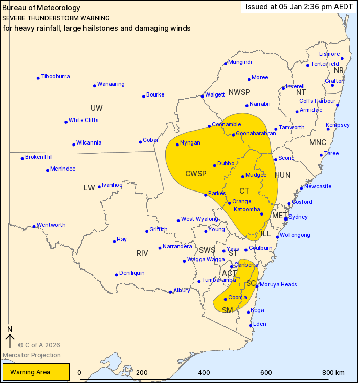 affected include Orange, Dubbo, Mudgee, Katoomba, Cooma and