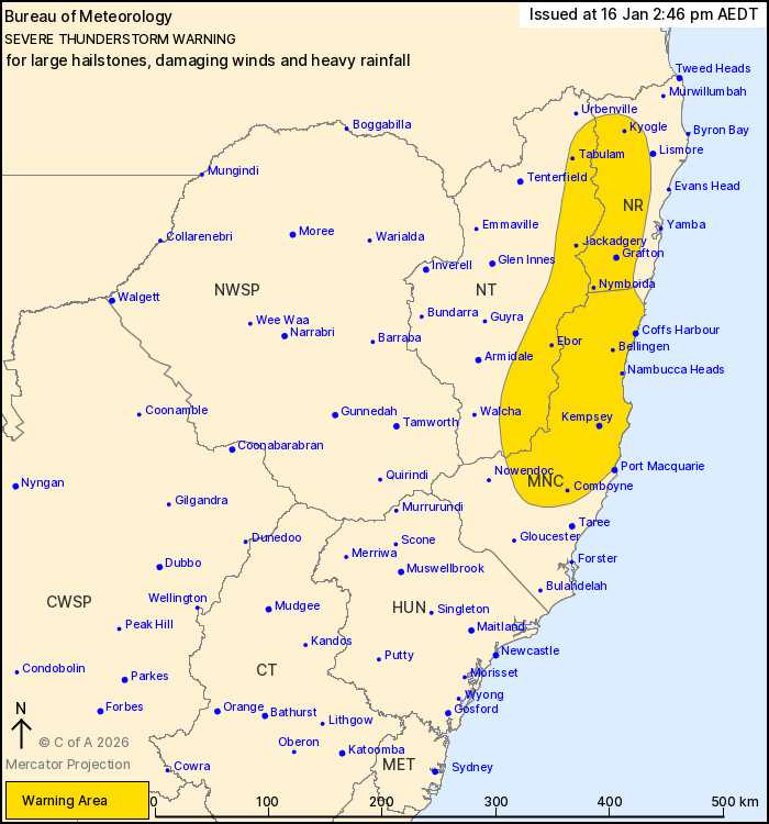 may be affected include Grafton, Coffs Harbour, Kempsey, Kyogle,