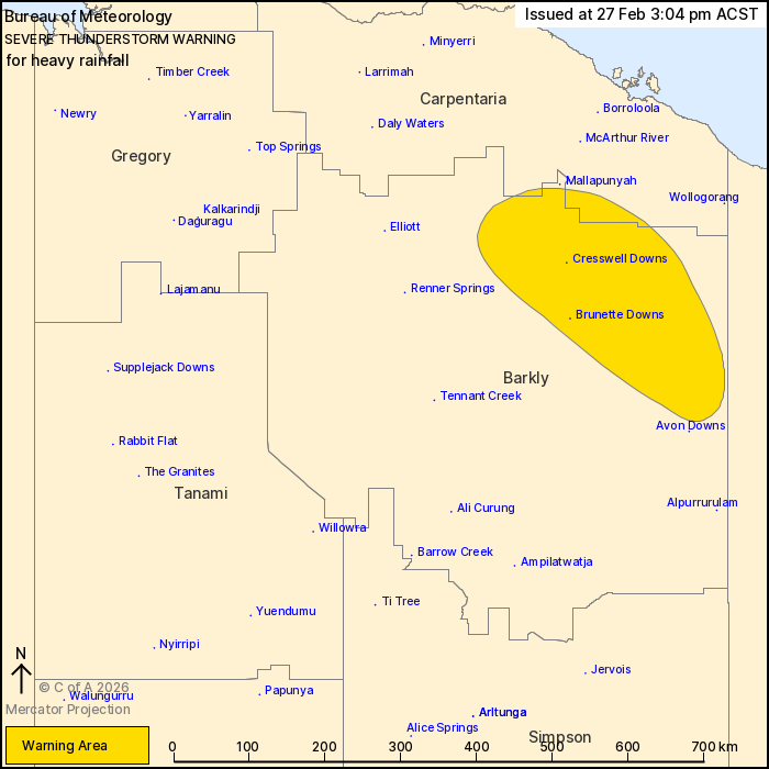 Heavy rainfall with slow moving storms through parts of the Barkly