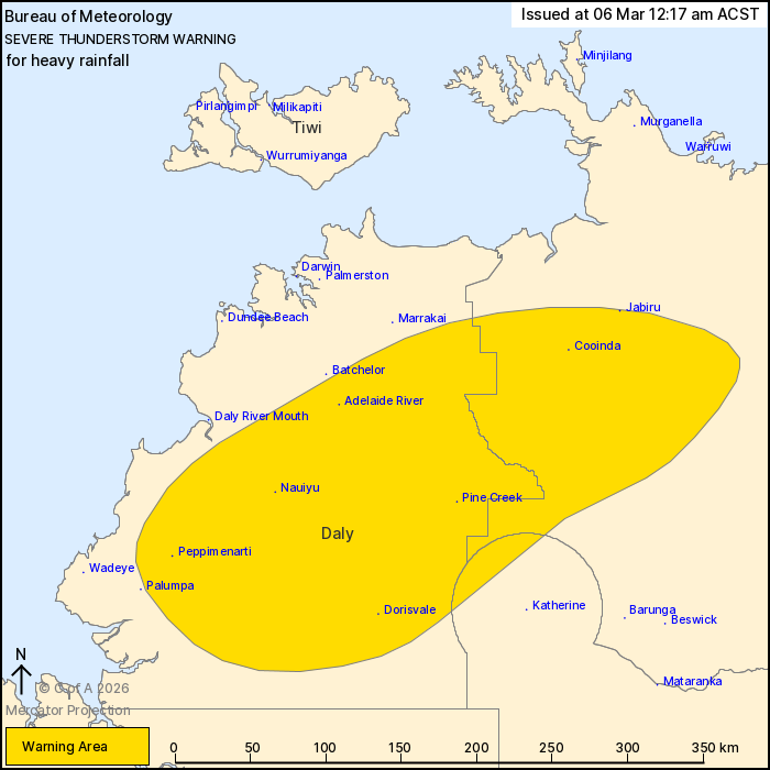 Heavy rainfall in the inland Top End.
