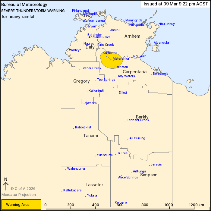 hours. Locations which may be affected include Katherine, Larrimah
