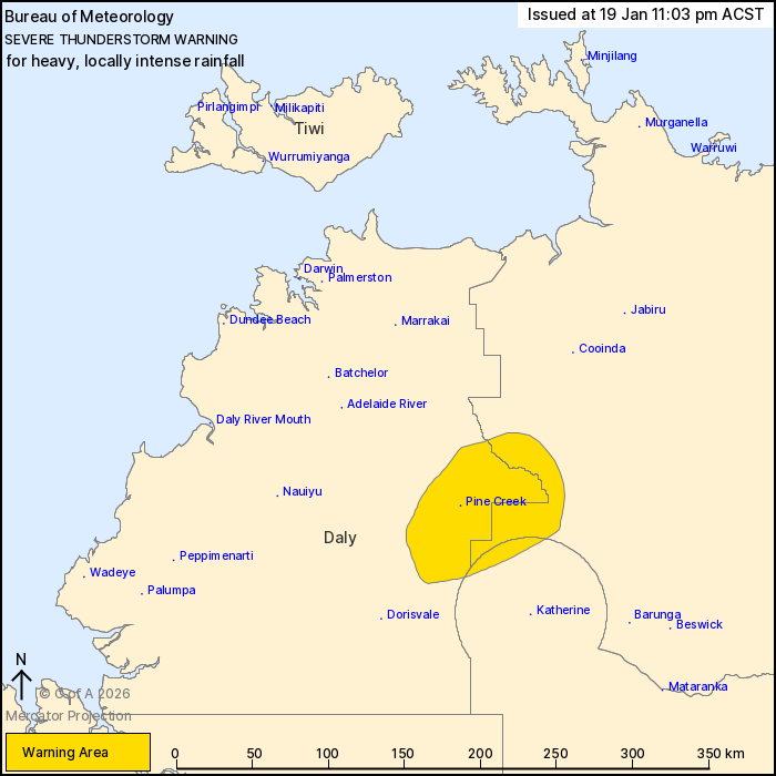 Locations which may be affected include Pine Creek and Kakadu