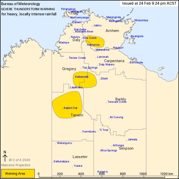 Locations which may be affected include Kalkarindji and Rabbit