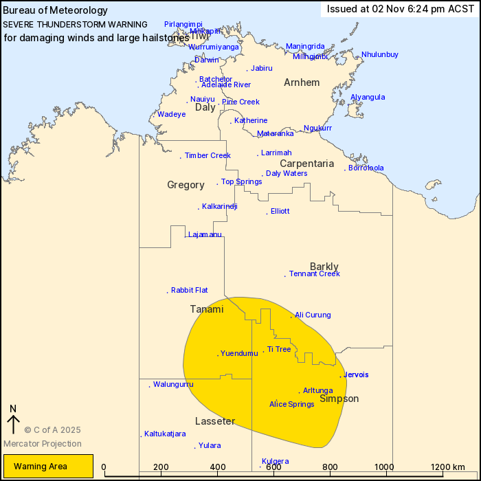 Locations which may be affected include Alice Springs, Yuendumu,
