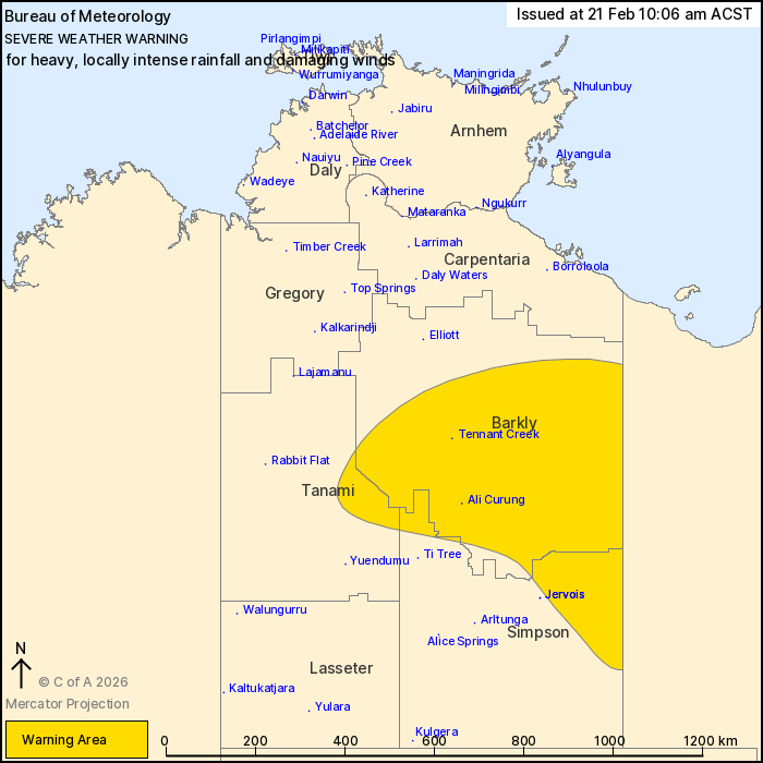Locations which may be affected include Tennant Creek and Ali