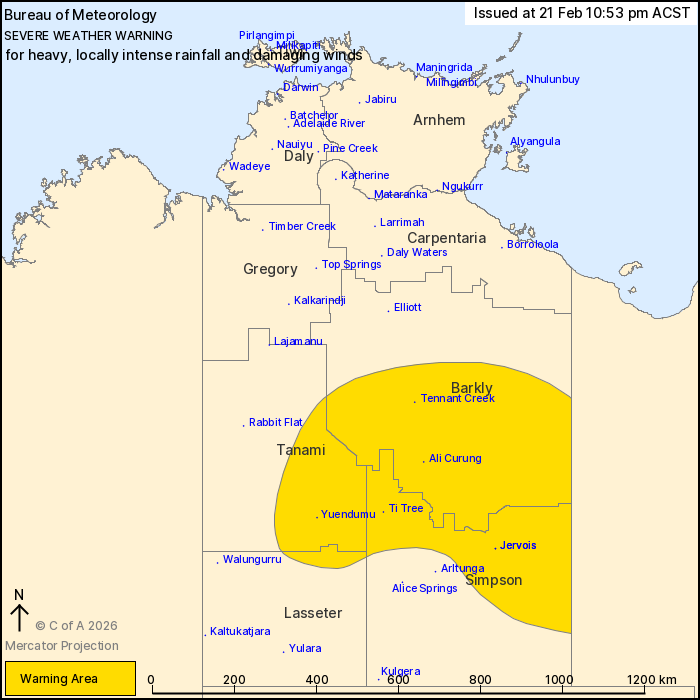 Locations which may be affected include Tennant Creek, Yuendumu,