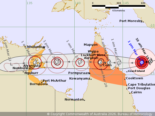 the Cape York Peninsula coast. VERY DESTRUCTIVE WIND GUSTS will