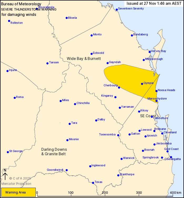 affected include Maroochydore, Gympie, Noosa Heads, Nambour,