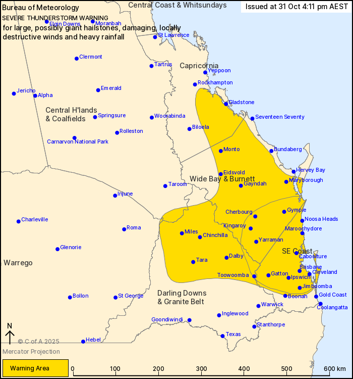 Locations which may be affected include Toowoomba, Brisbane, Dalby,