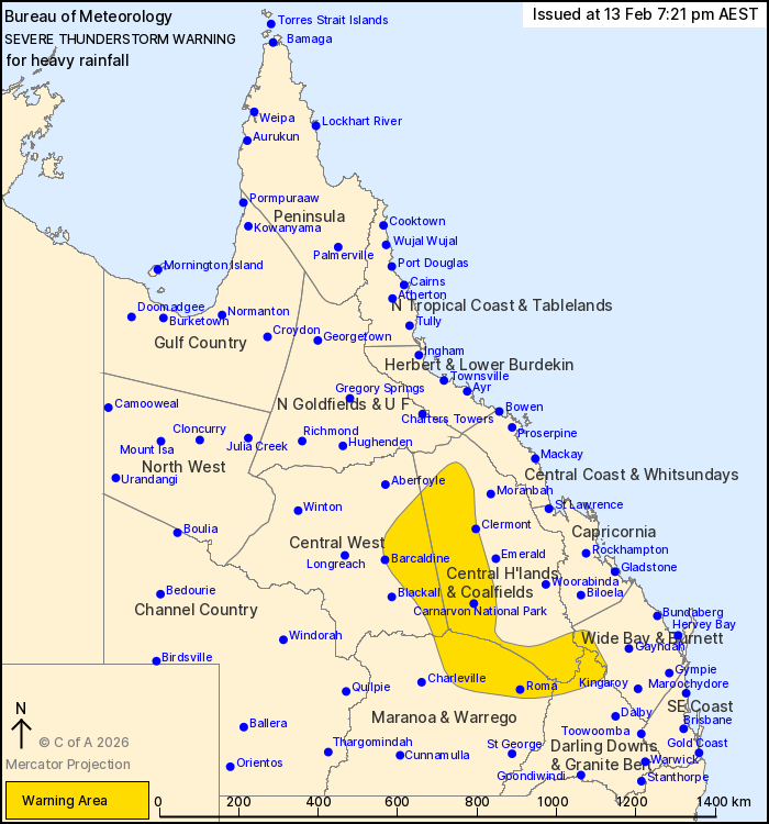{smsmessage:QLD Severe T'Storm: Heavy Rain. Roma, Clermont,