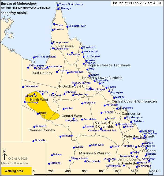 hours. Locations which may be affected include Mount Isa, Dajarra,