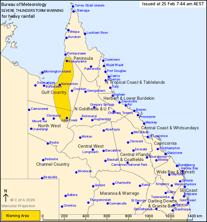Issued at 7:44 am Wednesday, 25 February 2026.