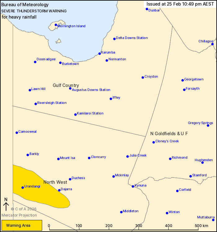 hours. Locations which may be affected include Urandangi.