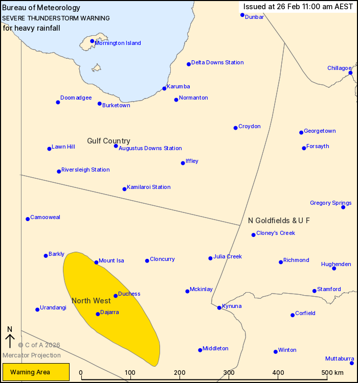 hours. Locations which may be affected include Dajarra and