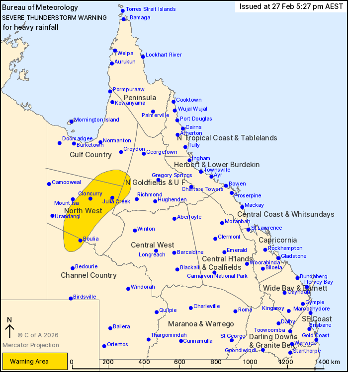 hours. Locations which may be affected include Cloncurry, Julia