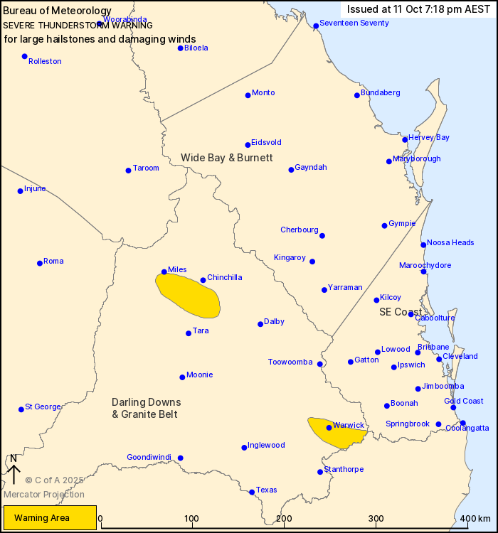 Queensland down through to the Darling Downs. Severe thunderstorms