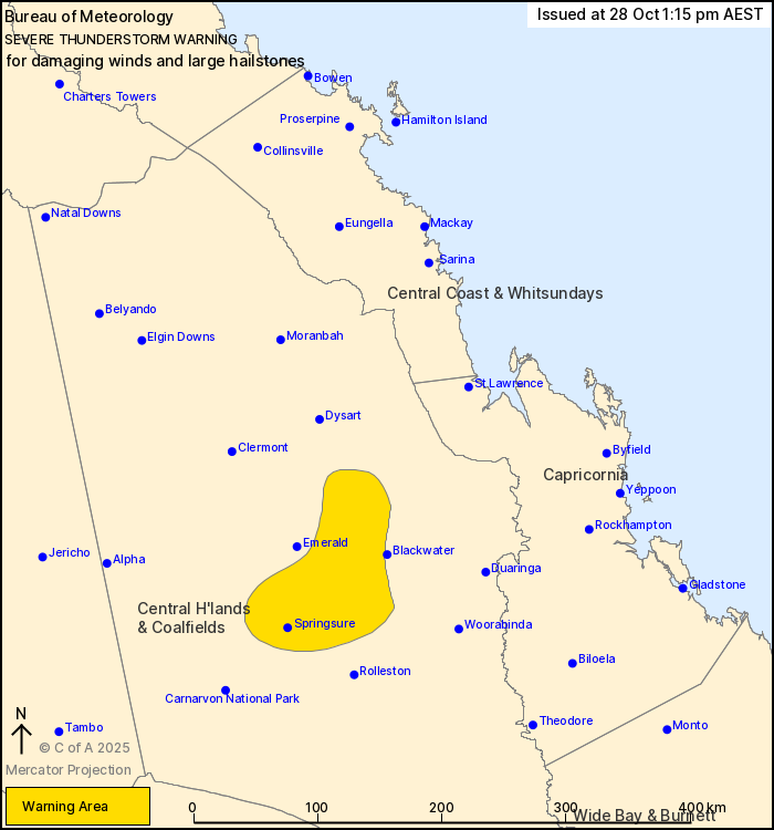 Locations which may be affected include Springsure and Comet.