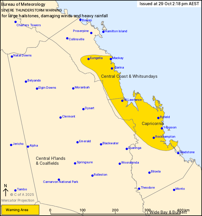 may be affected include Rockhampton, Mackay, Yeppoon, St Lawrence,