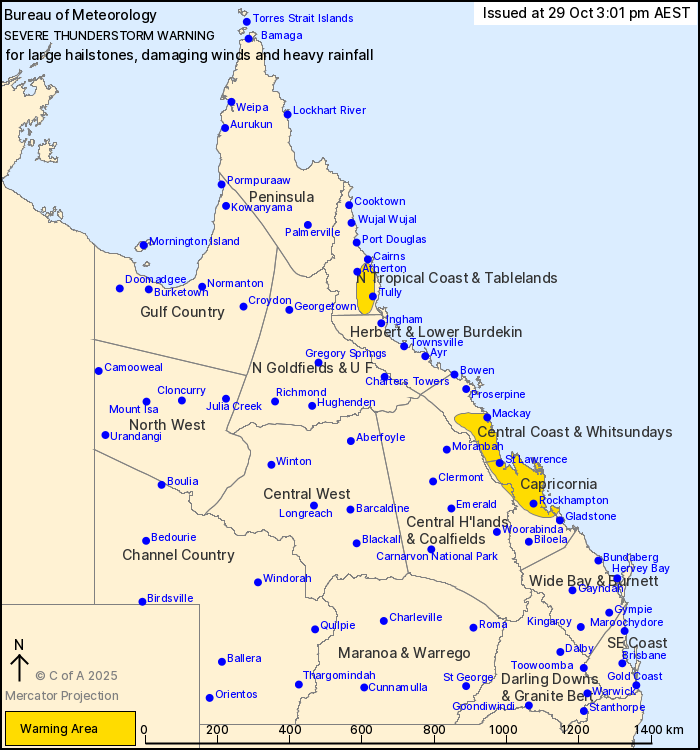 may be affected include Rockhampton, Mackay, St Lawrence, Tully,