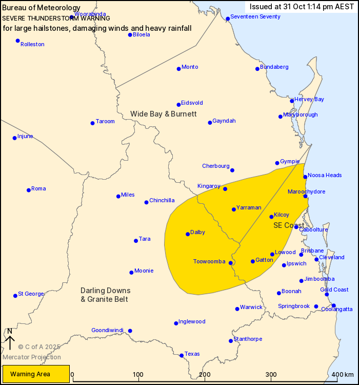 may be affected include Toowoomba, Dalby, Maroochydore, Kingaroy,