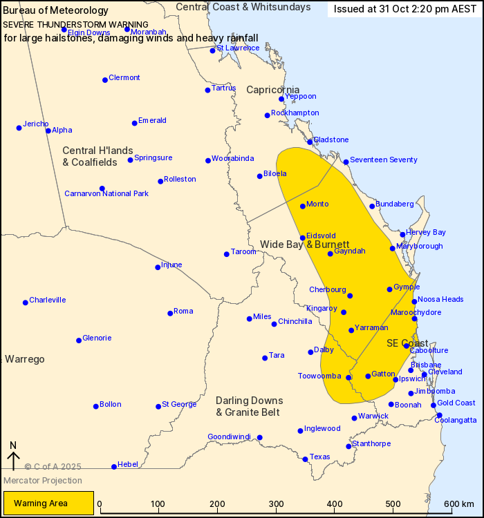 may be affected include Toowoomba, Maroochydore, Gympie, Kingaroy,