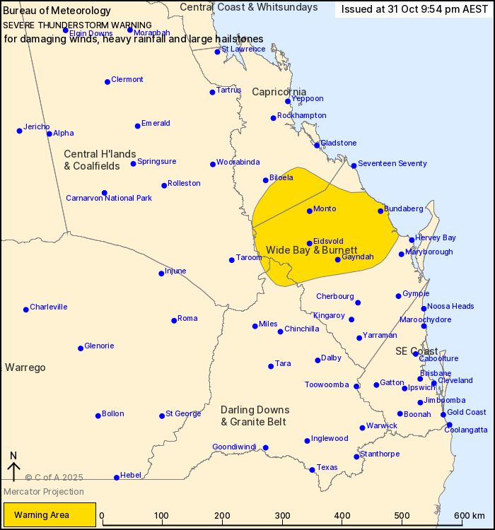 Locations which may be affected include Bundaberg, Monto, Gayndah,