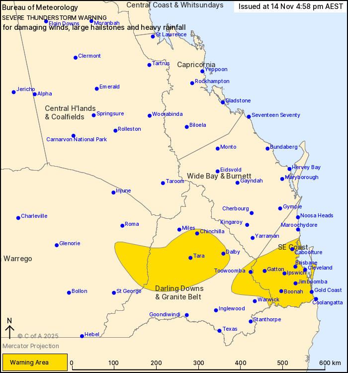 be affected include Gold Coast, Toowoomba, Brisbane, Dalby,