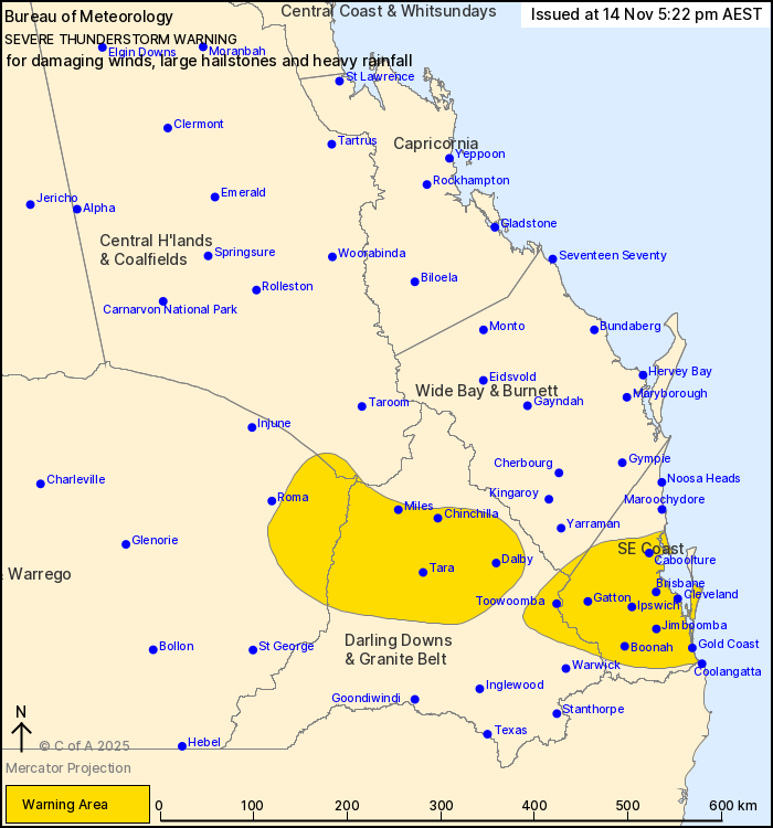 be affected include Gold Coast, Toowoomba, Brisbane, Dalby,