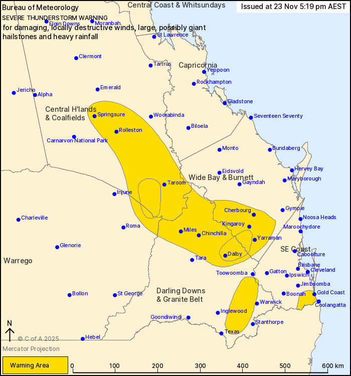 which may be affected include Gold Coast, Dalby, Kingaroy,