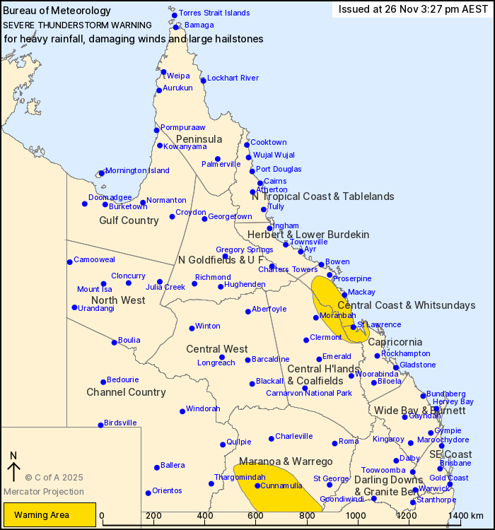 parts of the Central Highlands and Coalfields and Capricornia