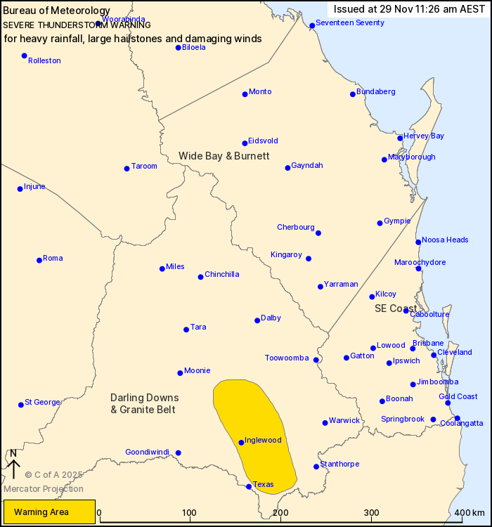 Inglewood in the Darling Downs and Granite Belt to the west of a