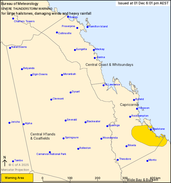 may be affected include Gladstone, Calliope and Miriam Vale.
