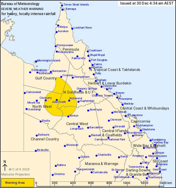 Locations which may be affected include Cloncurry, Richmond, Julia