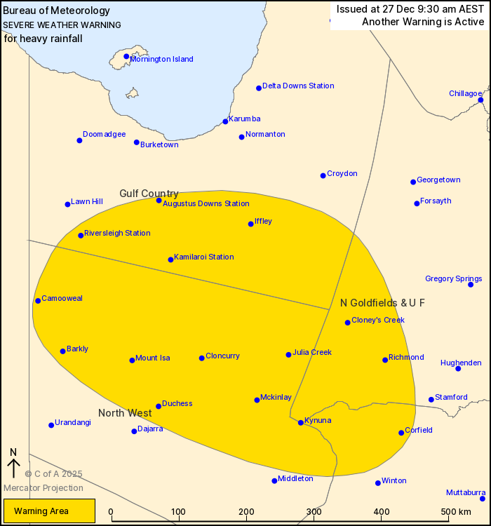 Areas of heavy rainfall about northwest Queensland are forecast to
