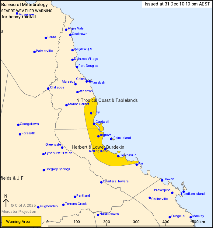 A separate Severe Weather Warning is current for northwestern Queensland. Flood Watches and Flood Warnings are current for Northern Queensland. Please refer to https://www.bom.gov.au/weather-and-climate/warnings-and-alerts for more information.